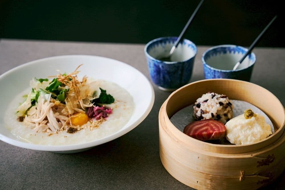 モーニングからバータイムまで、時間帯に応じて表情を変えるこの場所では、「YWE / イー = You are What you Eat. / Yes, We Eat.(人は、自身が選び、食し、吸収したものでできている)」というコンセプトのもと、健康的で新しい提案が楽しめます。実際にいただいた朝食は、せいろと朝粥セット。塩麹と鶏スープで炊き上げられた粥とせいろで蒸した野菜、自家製焼売など身体がリセットされるプレートで、心と体にすっと染み込むような味わいでした。