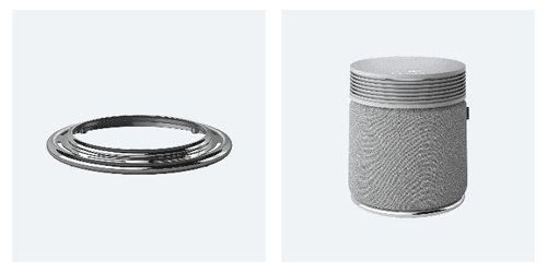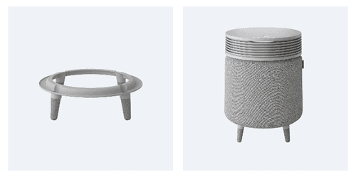 Blue Signature™ SP4iの第一印象は、いい意味で“空気清浄機らしくない”こと。ラウンド型のフォルムは有機的で優しく、360°を覆うファブリック素材の外装は、まるで上質なテキスタイル家具のよう。さらに別売りながら、脚部はナチュラルウッドの脚かミニマルなメタルベースから選ぶことができ、空間の雰囲気や好みに合わせてコーディネート可能です。