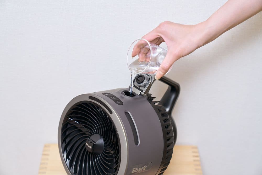 ミスト冷却は、気化熱(蒸発するときに熱を奪う現象)を活かしたもの。シャークのファンではこの効果を最大限に活かし、真夏の屋外でもひんやり感を演出。特にPro Mistは水タンクに氷を入れられる仕様で、単なる風では得られない体感温度の変化を実現している。